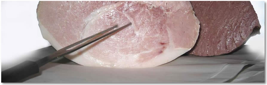 | Wir produzieren und verarbeiten in unserem Betrieb keine Formfleischschinken bestehend aus kleineren, zusammengefügten Fleischstücken aus Schinken bzw. Schulter und keine Schinken-Ersatzprodukte (auch Schinkenimitat genannt) |